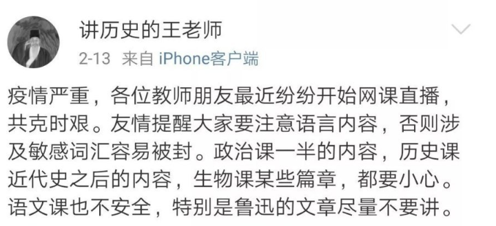 紧跟其后,是历史课的小心翼翼。然而,仍然难以避免直播授课被封。