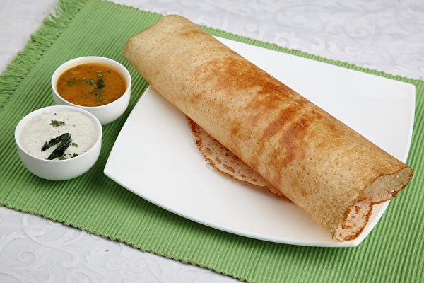 这个小贩所制做和出售的是一种名叫多萨(dosa)的南印度卷饼,它有点像印度版本的松饼,但其面糊不使用面粉,而是由豆子和米捣碎后混合而成。这种面糊在煎过之后,可佐以香料或其他馅料食用。