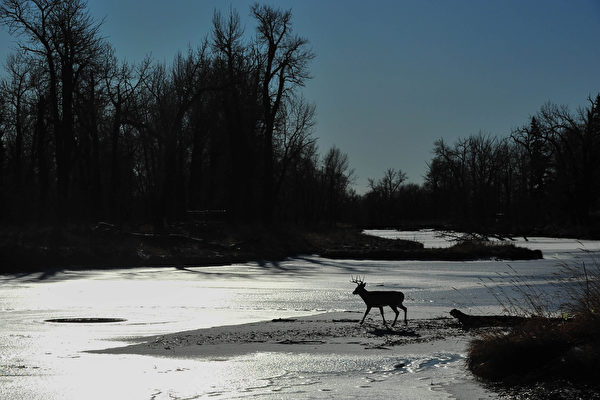 这并非第一只倒楣的鹿受困在堪萨斯州的结冰湖面。