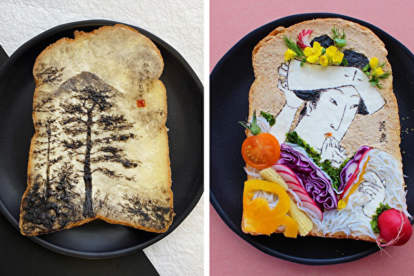 日本一位年轻的设计师兼水彩画家利用疫情而隔离在家的空闲时间,独具创意将平日里再常见不过的吐司作为画布,运用果酱、水果等食材创作出一系列极富趣味的艺术早餐,令人赏心悦目。