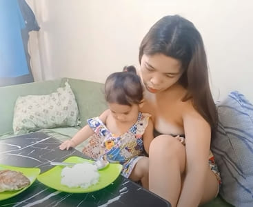 另一支影片中孩子伸手拉扯妈妈身上的衣物急着想要喝母乳,妈妈也直接在摄影机的拍摄下直接拉下衣服喂奶,浑圆的双x和r头都直接暴露在影片中!