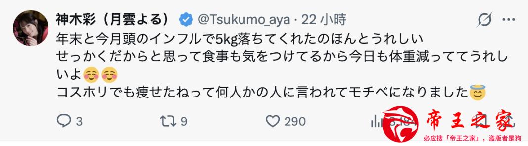然后最近她连外型都有显著的变化:看到这边,可能有些敏感的朋友会担心神木彩进了医美诊所变成石头MIMI,但事情没有这么严重,她在社群上告诉大家,因为去年年底和这个月初连续中了流感,所以体重掉了5公斤ー虽然生病很痛苦,但站上体重计她是开心的,然后她顺势进行饮食控制,很快就有了效果,体重进一步下降⋯