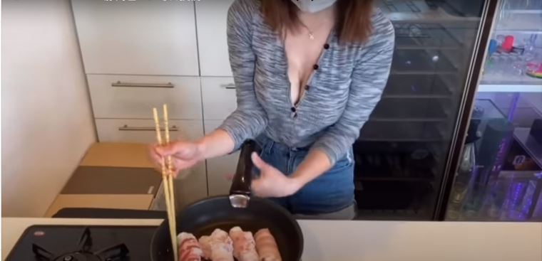 ▼ ▲ YouTuber「くるみ」的烹饪影片引起讨论的不是料理,而是身材。(图/翻摄画面)